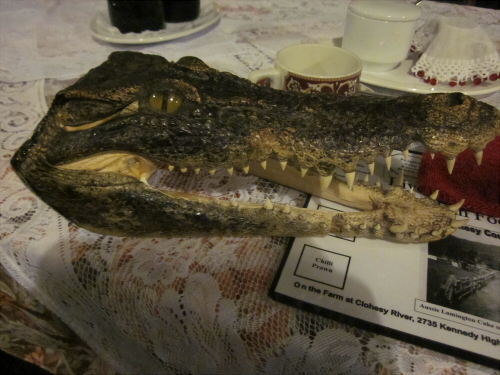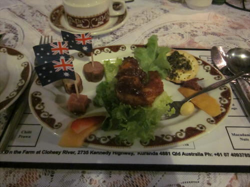 オーストラリアの旗が刺さっているのがお肉なんですが、上から牛、ワニ、カンガルーだそうです。真ん中のはエビね。エビが一番うまかった