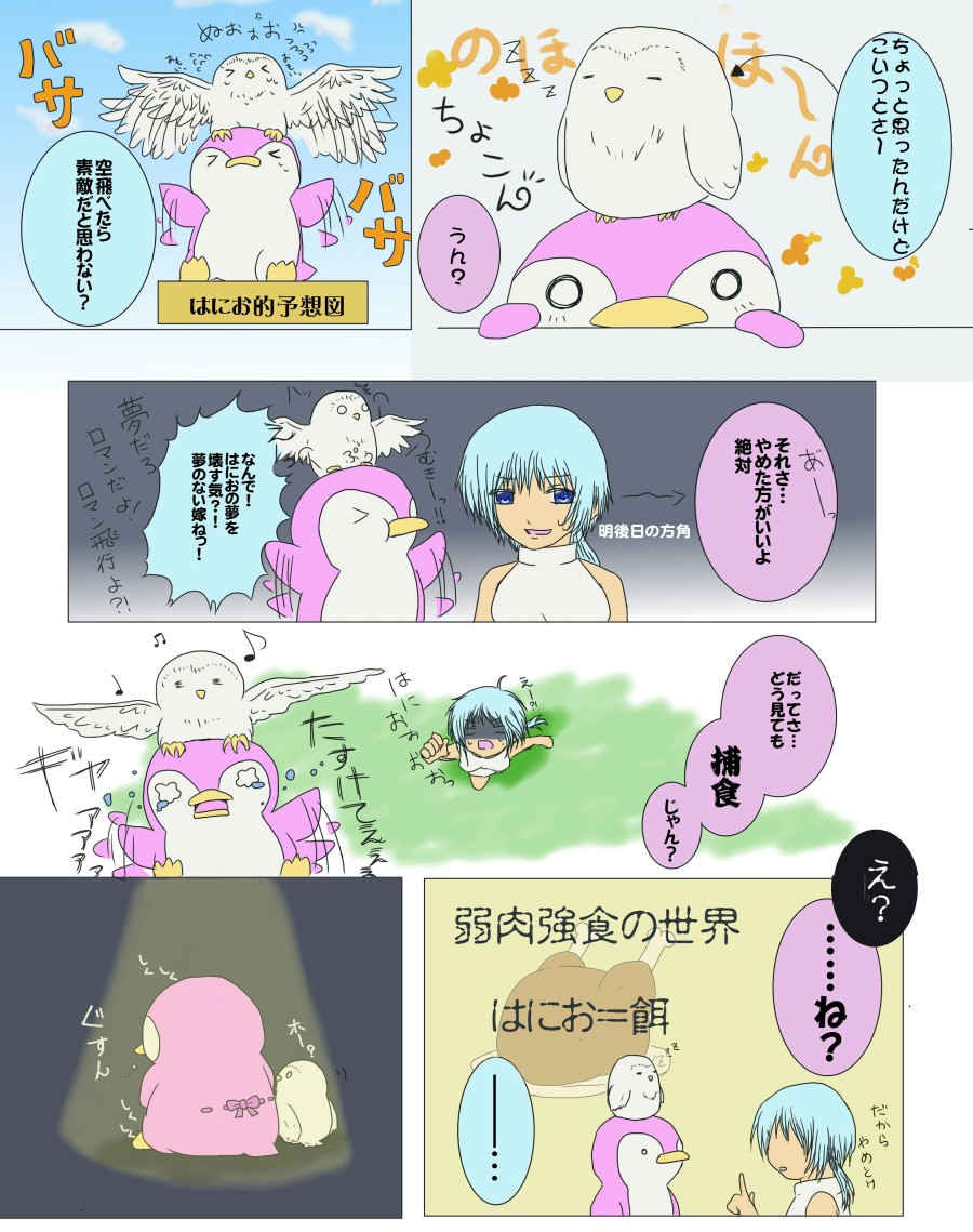 このブログで風船くっつけて飛んでいるはにおはきっと、フクロウに食べられずに飛べる方法を編み出そうとした結果なのでしょう。