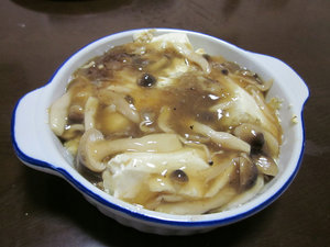 あと本来しめじではなくごぼうでしたが、ごぼう冷蔵庫になかったし(´・ω・`)前日あんかけ豆腐に使ったしめじが結構残ってたので、それ全部使ってやりました((( ̄へ ̄井) フンッ